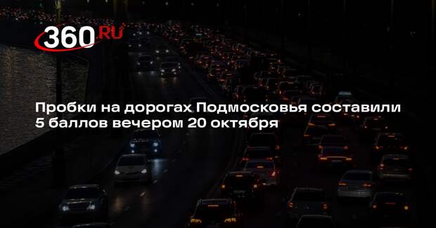 Загруженность дорог Московской области оценили в пять баллов вечером 20 октября. Движение оказалось затруднено на Каширском, Дмитровском, Ярославском, Калужском и Киевском шоссе, сообщили в Минтрансе региона. Заторы также наблюдаются на Можайском, Рублево-Успенском, Новорижском, Пятницком, Ленинградском, Щелковском и Носовихинском шоссе.