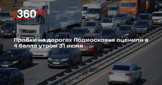 Пробки в Московской области утром в четверг, 31 июля, составили четыре балла. Сегодня на региональных дорогах зарегистрировали свыше миллиона машин. Движение транспорта затруднено в утренние часы на Ярославском, Ленинградском, Щелковском, Каширском, Носовихинском и Варшавском шоссе. Заторы выявили на Киевском, Можайском, Минском, Волоколамском, Пятницком шоссе и шоссе Энтузиастов, а также на трассе М-2 «Крым».