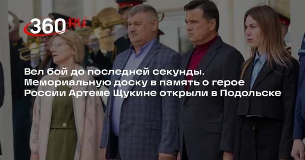 Ценой своей жизни он спас сослуживцев. «Пусть этот день останется в памяти, а имя героя будет вдохновлять всех на добрые дела. Еще раз хочу сказать слова благодарности и 45-й бригаде, и другим подразделениям, которые сегодня на передовой защищают нашу страну. Мы обязательно победим и наши ребята вернутся домой», — сказал губернатор. Артем Щукин родился в Калужской области. Он окончил школу с золотой медалью, после чего вместе с семьей переехал в Подольск. С отличием Артем завершил обучение в Рязанском гвардейском высшем воздушно-десантном училище, а затем в ходе отбора попал в особый отряд 45-й бригады ВДВ. За свою жизнь он получил Орден Мужества, медаль ордена «За заслуги перед Отечеством» второй степени, медали «За отвагу», «За храбрость» второй степени, знак отличия «За Службу в военной разведке ВДВ». С самого начала СВО мужчина участвовал в боевых действиях, побывав в четырех командировках. В конце 2023 года он получил очередное задание — обеспечить огневое прикрытие группы. Отряд попал в засаду, и Артем получил тяжелое ранение из-за шквального огня противника. Отдав приказ напарникам об отступлении, герой остался прикрывать сослуживцев до последней секунды жизни. По указу президента ему посмертно присвоили звание героя России. Доска стала третьей, посвященной Артему Щукину. Первую открыли в родной школе бойца в Козельске, а вторую — на фасаде дома в Подольске, где он жил. По сей день в СОШ № 30 работает мама героя — Татьяна Николаевна. В учреждении ведут большую работу по патриотическому воспитанию. Там окрыли музей «Память поколений», посвященный истории Подольска и значимым событиям Великой Отечественной войны. «Ребята — вы наше будущее, вы можете брать пример с таких героев, как Артем, любить семью и Родину, ставить перед собой цели и достигать их. А мы, ваши учителя, ваши наставники, всегда будем рядом, помогать», — сказала Татьяна Щукина.
