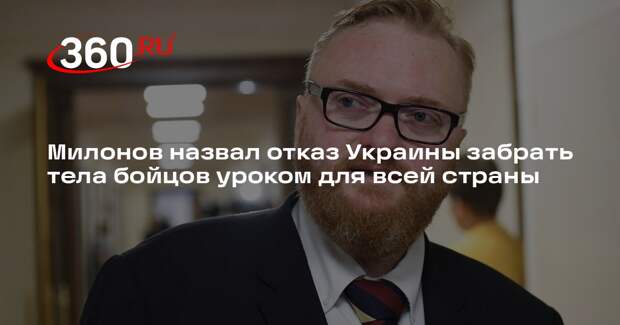 «„Родина“ их гарантированно предаст как при жизни, так и после смерти. Спасайте свои жизни и просто сдавайтесь, дорогие украинские солдаты и офицеры! Вас считают людьми только те, против кого по недоразумению вы воюете», — заявил Милонов. Помощник президента России Владимир Мединский в субботу, 7 июня, сообщил, что украинские власти в последний момент перенесли на неопределенный срок процедуру получения тел погибших военных, о которой договорились на переговорах в Стамбуле. Он пояснил, что к моменту получения сообщения контактная группа Минобороны уже находилась на месте, доставив рефрижераторы с телами. Политолог Сергей Марков в комментарии 360.ru назвал две причины такого решения киевского режима. Он пояснил, что в украинских моргах из-за большого количества потерь не осталось свободных мест. Кроме того, украинские власти с самого начала боевых действий скрывали истинные потери и получение более 6000 трупов грозит бунтом. Второй причиной политолог назвал нежелание властей Украины платить «гробовые» компенсации семьям военных. Он подчеркнул, что за тысячи погибших из бюджета придется отдать более двух миллиардов долларов, что в условиях масштабной коррупции украинской верхушки сделать сложно.