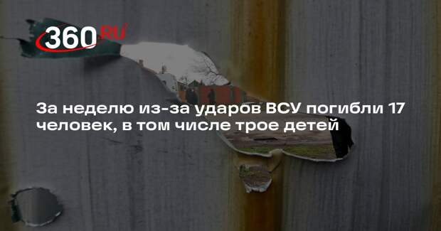 За неделю от ударов со стороны ВСУ погибли 17 мирных жителей России, трое из них — несовершеннолетние. Об этом заявил посол МИД по особым поручениям по преступлениям киевского режима Родион Мирошник, его процитировало РИА «Новости». «За минувшую неделю от обстрелов украинских нацистов пострадали 156 мирных жителей: ранены 139 человек, в том числе 11 несовершеннолетних, погибли 17 человек, в том числе трое несовершеннолетних», — сказал он.