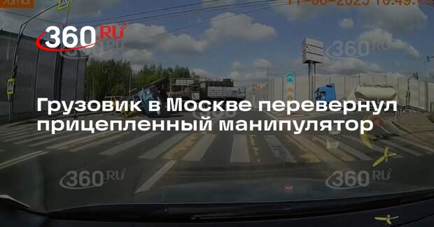 В Москве недалеко от деревни Юрова случилось ДТП с грузовой машиной. Кадры с места аварии оказались в распоряжении 360.ru. На них видно, как по дороге ехал манипулятор (автомобиль, оснащенный краном), сзади к нему был прицеплен средний грузовик. В какой-то момент манипулятор резко развернулся и под давлением заднего автомобиля опрокинулся на асфальт.