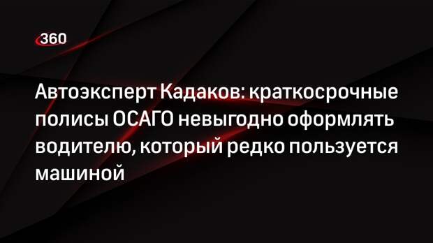 Человеку, который пользуется машиной несколько раз в сезон, будет невыгодно оформлять краткосрочный полис ОСАГО из-за его высокой стоимости. Об этом в беседе с телеканалом «Звезда» сообщил автоэксперт, Максим Кадаков. При этом он заметил, что потенциальный спрос на краткосрочные полисы существует. «Мне нет смысла оформлять одно-двухдневное ОСАГО, помнить о том, что оно начинает действовать через три дня, и заниматься этим каждый раз», — сказал Кадаков.