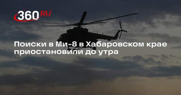 Поиски исчезнувшего вертолета Ми-8 приостановили в Хабаровском крае, потому что в районе стемнело. Об этом РИА «Новости» заявил представитель Восточного межрегионального следственного управления на транспорте СК России. «Поиски прекращены [до утра]. Там уже темно», — заявил он журналистам. Ранее пресс-служба Восточного межрегионального СУТ СК России сообщила, что после пропажи вертолета начали проверку по признакам нарушения правил безопасности, повлекшего смерть людей.