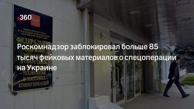 Роскомнадзор с начала специальной операции на Украине заблокирован больше 85 тысяч фейковых материалов о действиях вооруженных сил России. Об этом РИА «Новости» сообщил глава ведомства Вадим Субботин. Он подчеркнул, что против России велась целенаправленная информационная кампания, лишь за конец февраля ведомство заблокировало несколько десятков тысяч материалов с противоправной информацией. «Распространялась ложная информация о методах, способах ведения боевых действий, якобы атаках по гражданским объектам и мирному населению, значительных потерях в рядах российских войск», — сообщил Субботин. Замначальника Главного управления по противодействию экстремизму МВД России Дмитрий Петров сообщал, что основная волна распространения фейков о спецоперации распространялась не с территории России, а из-за рубежа.