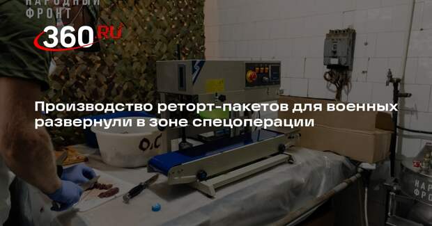 Народный фронт помог запустить производство консервированных реторт-пакетов для российских военнослужащих недалеко от линии боевого соприкосновения. Технологию разработали российские волонтеры. Технология позволяет сжимать суточные пайки до небольших размеров, благодаря чему военные могут класть их в карманы.