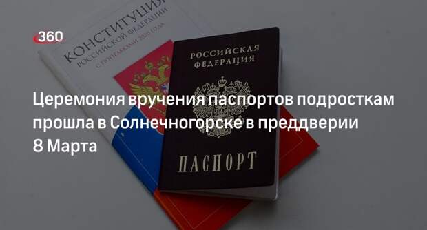 Восемь девушек, которым исполнилось 14 лет, получили первые паспорта в Солнечногорске. Торжественная церемония прошла в Доме культуры «Выстрел» преддверии 8 Марта. Гостями мероприятия стали первый заместитель главы городского округа Солнечногорск Александр Мамлай, председатель совета депутатов Марина Веремеенко, старший лейтенант полиции Кристина Трофимова, а также представители центра «Мои документы».