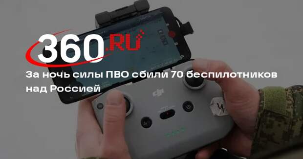 За ночь силы противовоздушной обороны уничтожили 70 беспилотников ВСУ над российскими регионами. Об этом сообщила пресс-служба Минобороны России. «В течение прошедшей ночи с 23:00 по московскому времени до 07:00 дежурными средствами ПВО уничтожены и перехвачены 70 украинских беспилотных летательных аппаратов», — заявили в ведомстве.